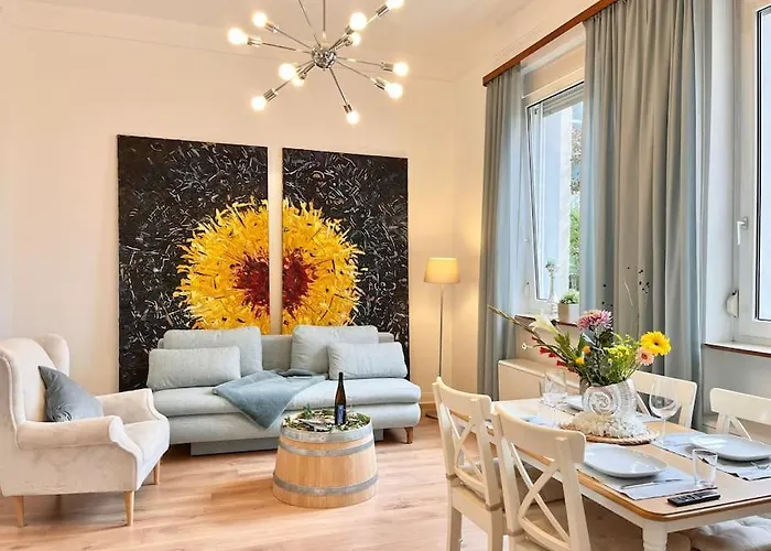 Oprócz urządzenia do parzenia kawy/herbaty, obiekt noclegowy obejmuje pełnowymiarową kuchnię z lodówką. Od apartamentu o powierzchni 80 m^2 do przystanku autobusowego Kant-Gymnasium w niewielkiej odległości. Obiekt posiada taras.